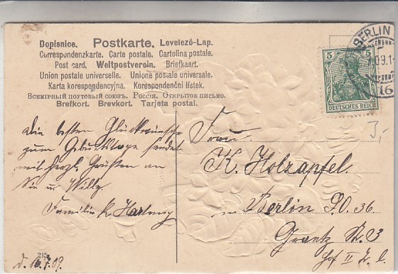 Glückwunsch AK Ansichtskarte zum Geburtstag Blumen AK mit Soff 1909