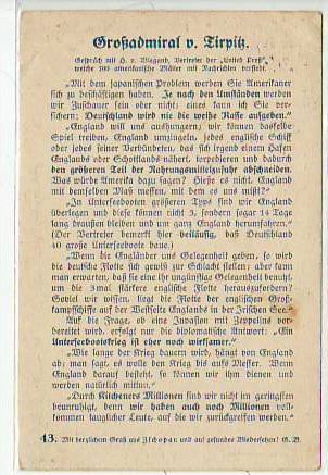 Marine 1.WK Kapitän, Admiral von Tirpitz