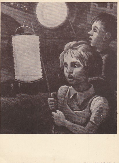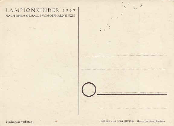 alte Ansichtskarten Postkarten Bilder nach Maler Gerhard Benzig Lampionkinder 1947