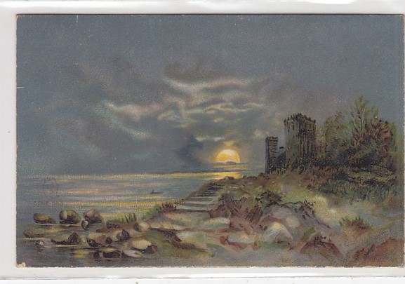 alte Künstlerkarten N.M.Dubowski Wieczor Feldpost 1917