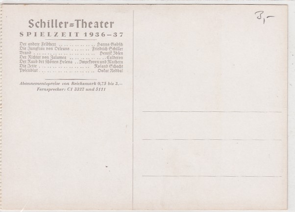 alte Künstlerkarten Polenblut Schiller Theater 1936-37