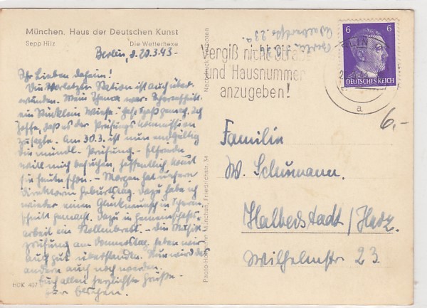 alte Künstlerkarten München Haus der Deutschen Kunst Richard Heymann Vaters Feldpostbrief