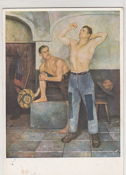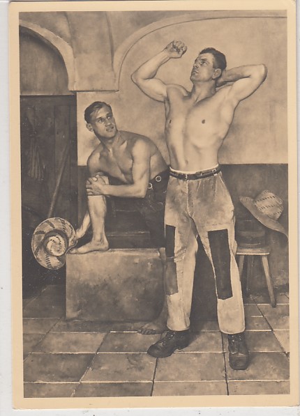 alte Künstlerkarten München Haus der Deutschen Kunst Sepp Hilz Bäuerliche Trilogie Die Knechte