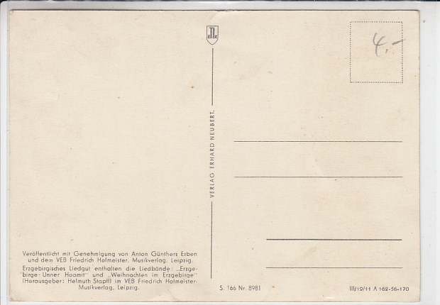 Liedkarten Liederkarten Erzgebirge Anton Günther Breitenbach 192