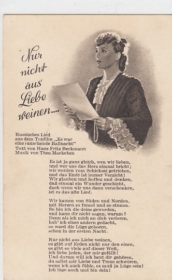 239 [440016] |  | Liedkarten Musik Nur nicht aus Liebe weinen Russisches Lied, Russland | 4.00EUR | In den Warenkorb |