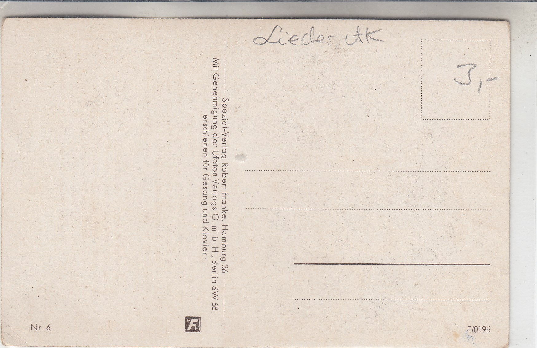 293 [440320] |  | Liedkarten Musik vor 1945 Ich habe an dich gedacht | 2.00EUR | In den Warenkorb |