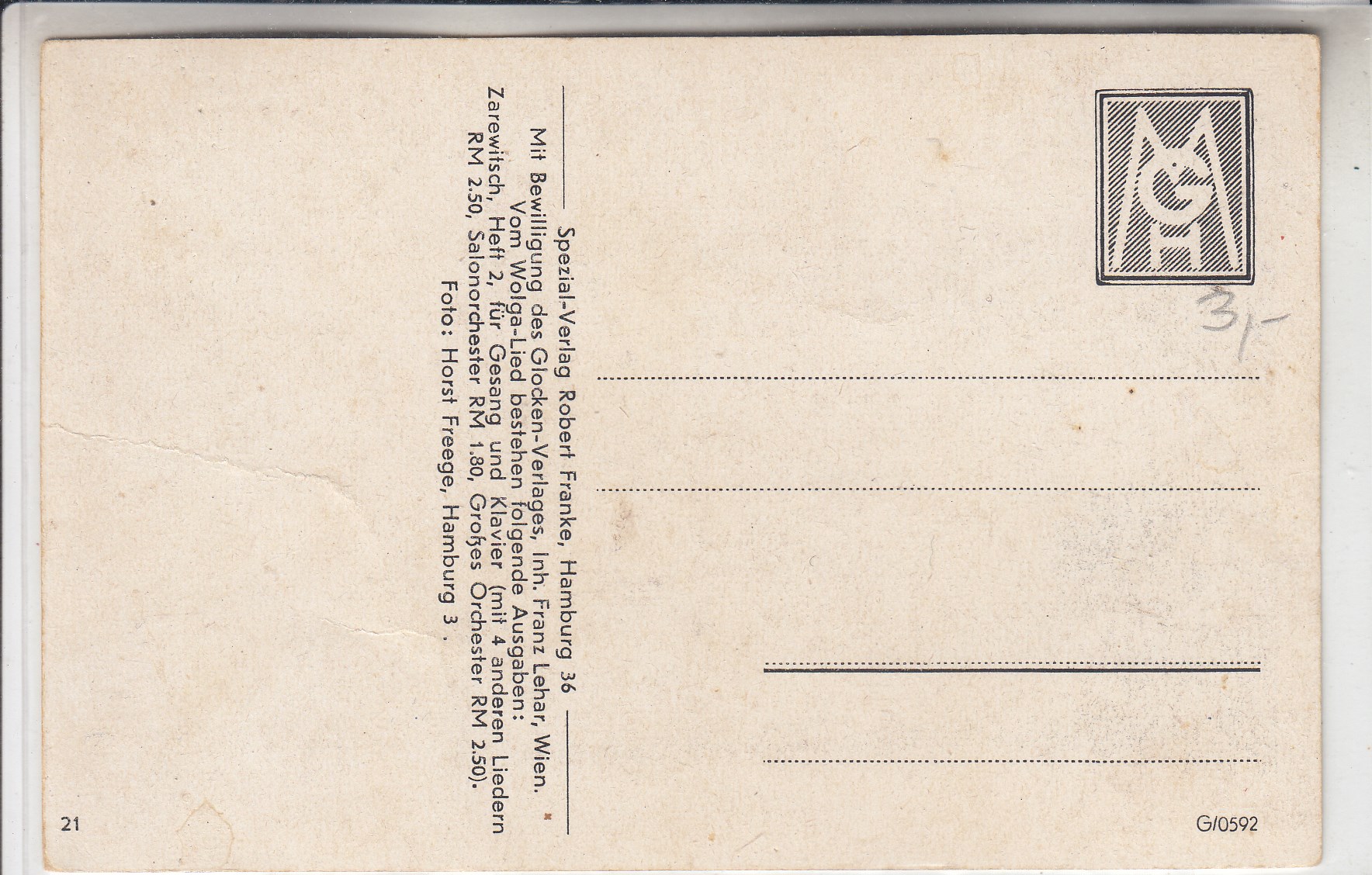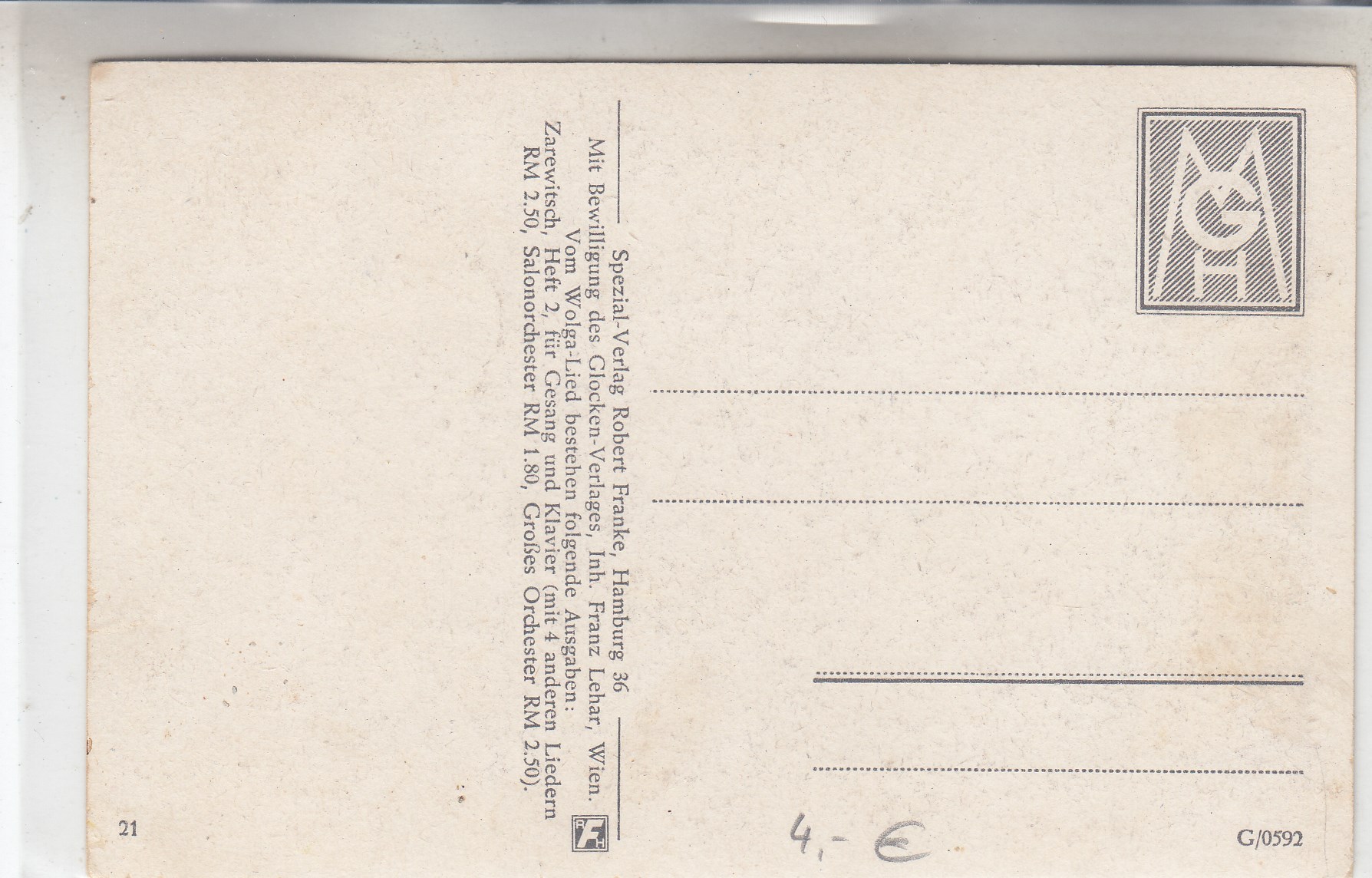 292 [440315] |  | Liedkarten Musik vor 1945 Heimatland Heimatland Feldpoststempel 1943 | 3.00EUR | In den Warenkorb |