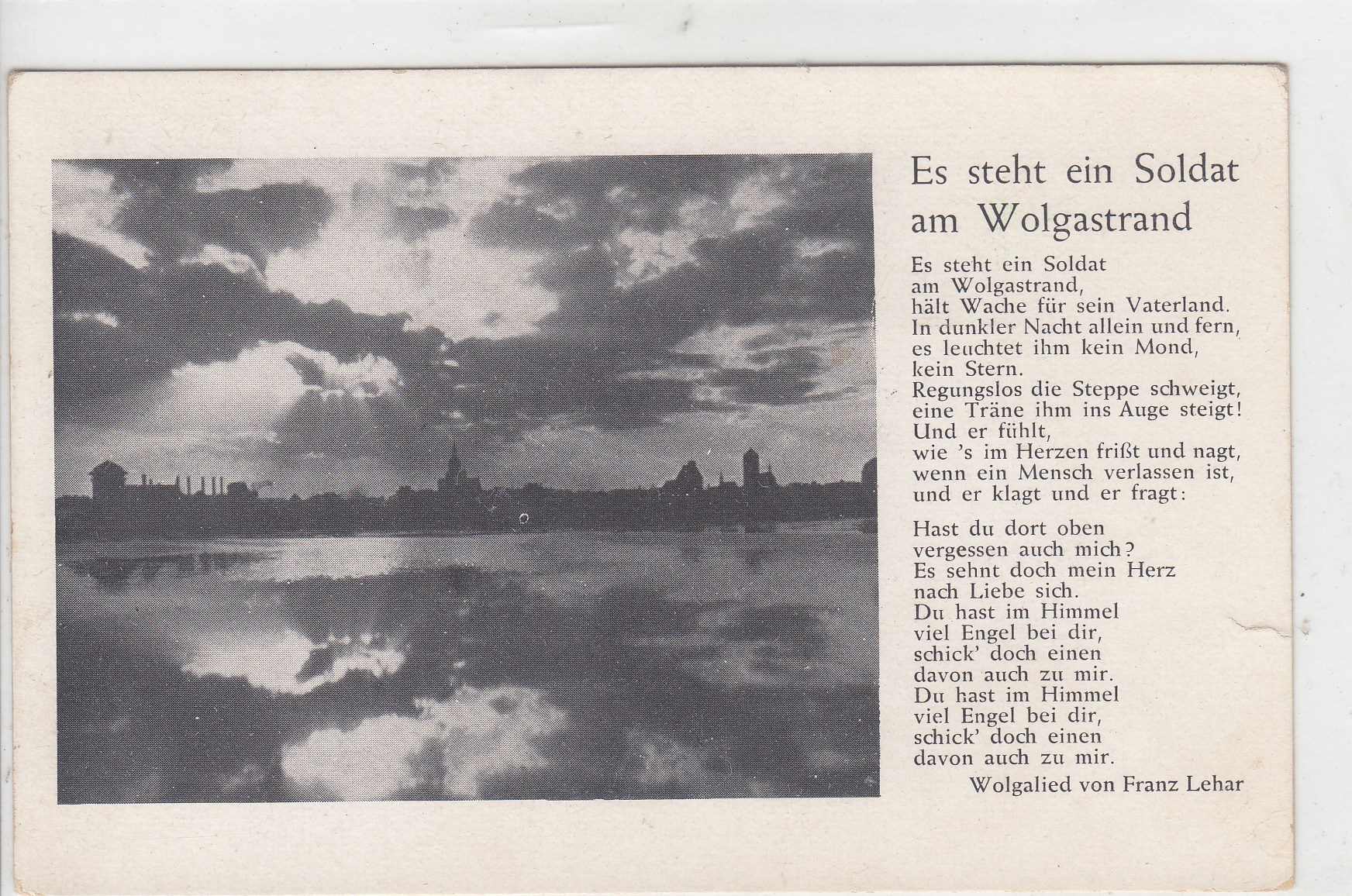 288 [440336] |  | Liedkarten Musik vor 1945 Es steht ein Soldat am Wolgastrand Militär Soldaten | 3.00EUR | In den Warenkorb |