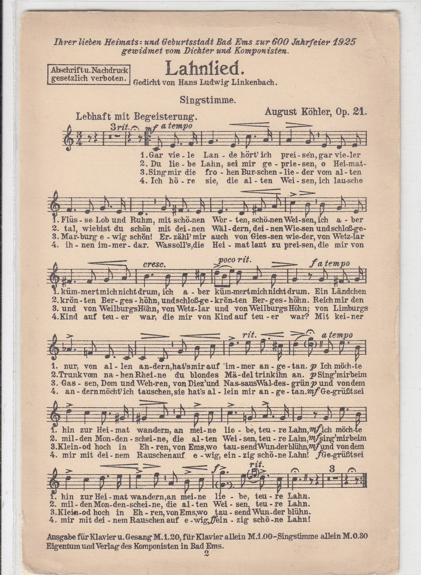268 [440367] |  | Liedkarten Musik So leb denn wohl du stilles Haus 1901 | 3.00EUR | In den Warenkorb |