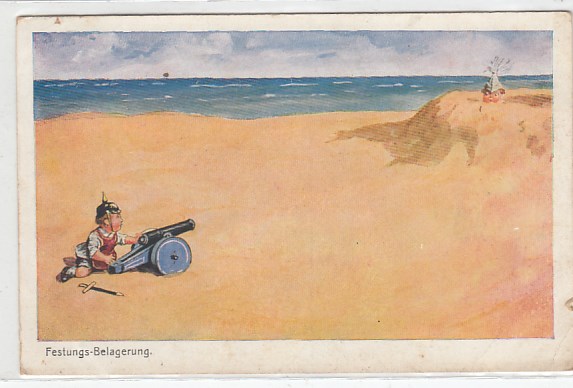 alte Ansichtskarte mit Kinder in Militär Uniform am Strand mit Kanone