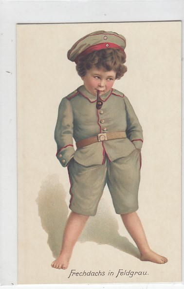 alte Ansichtskarte mit Kinder in Militär Uniform Frechdachs in feldgrau
