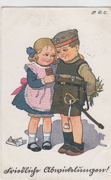 alte Ansichtskarte mit Kinder in Militär Uniform , Schokolade