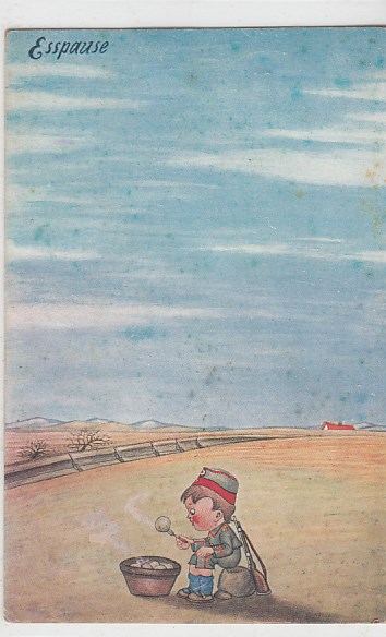 alte Ansichtskarte mit Kinder in Militär Uniform Esspause