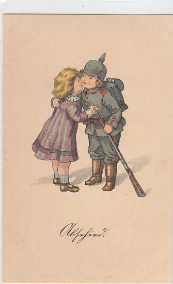 alte Ansichtskarte mit Kinder in Militär Uniform Künstlerkarte W.Pertel Feldpoststempel Flensbur