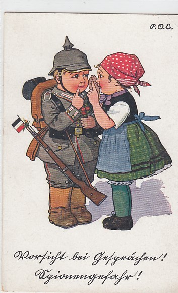 alte Ansichtskarte mit Kinder in Militär Uniform Künstlerkarte Hogo Spindler 1.WK Propaganda