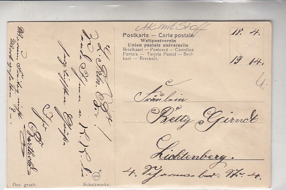 43 [m19144] |  | Ansichtskarten mit Stoff Blumen Glückwunsch 1914 | 4.00EUR | In den Warenkorb |