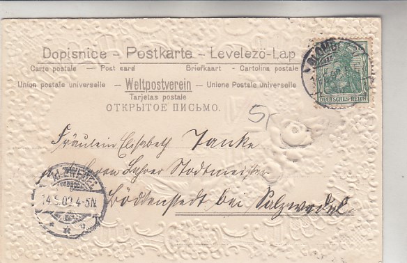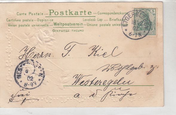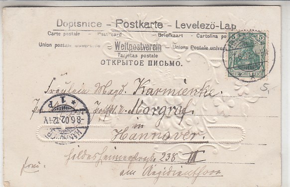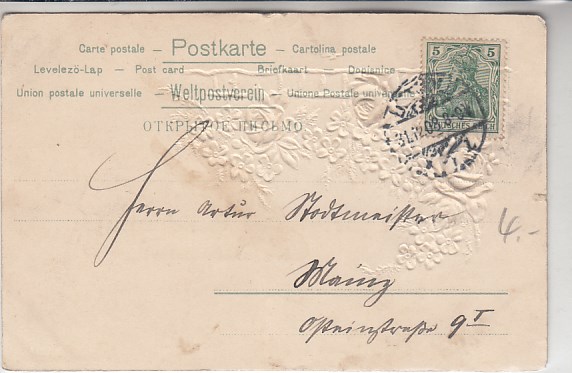 52 [m19120] |  | Ansichtskarten mit Stoff Blumen Prägekarte 1902 | 5.00EUR | In den Warenkorb |