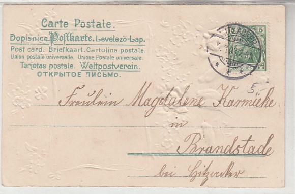 57 [m19007] |  | Ansichtskarten mit Stoff Glückwunsch Prägekarte Geburtstag 1905 | 5.00EUR | In den Warenkorb |