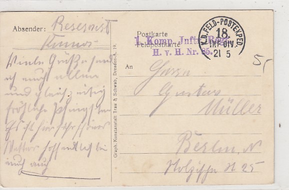 Militär 1. WK Telegraphen Abteilung Dresden 1917
