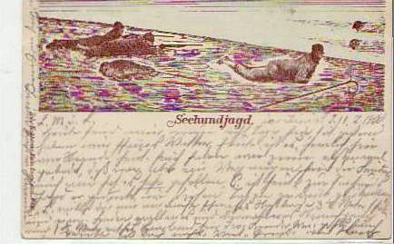 Jagd-Jäger Seehunde,Robben Litho 1900