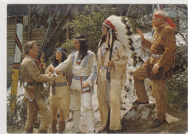 Cowboy & Indianer Karl May Postkarte Filme Schauspieler Winnetou Pierre Brice Götz George Walter