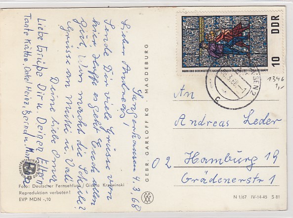 Briefmarken auf AK nach 1945 Ansichtskarten Postkarten
