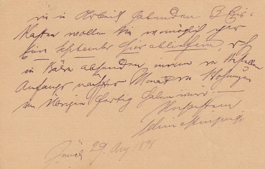Privatganzsache Postkarte Schweiz Zürich 1898