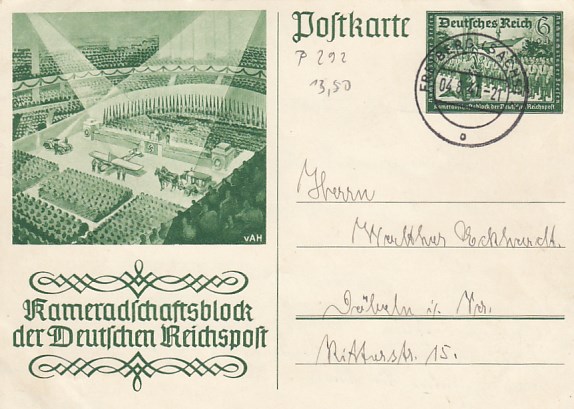 Privatganzsache Postkarte Deutsches Reichspost Winterhilfswerk 1938