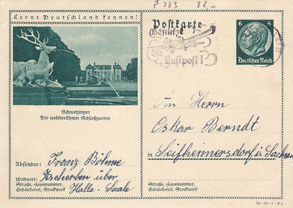 Privatganzsache Sachsen Sonderstempel Dresden 1938