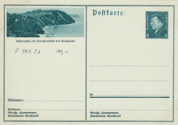 Privatganzsache Bernsteinküste Samland Ostpreussen