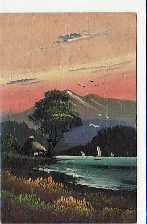 Handgemalte Ansichtskarten aus Holz Japan ca 1910