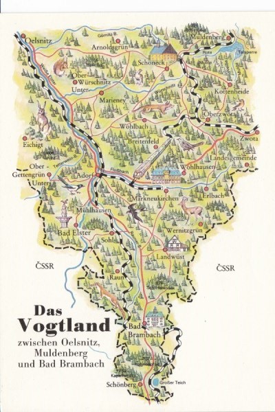 Postkarte als Landkarte Reichenbach Neuensalz Falkenstein Elsterberg Thoßfell Rodewisch Auerbach