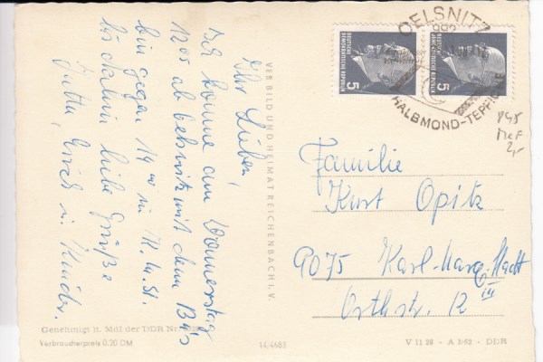Postkarte als Landkarte Reichenbach Neuensalz Falkenstein Mylau Rodewisch Oelsnitz Limbach