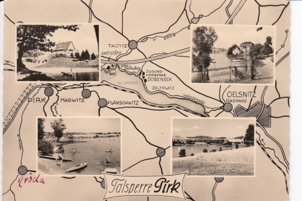 Postkarte als Landkarte Talsperre Pirk Oelsnitz Bösenbrunn Planschwitz Taltitz
