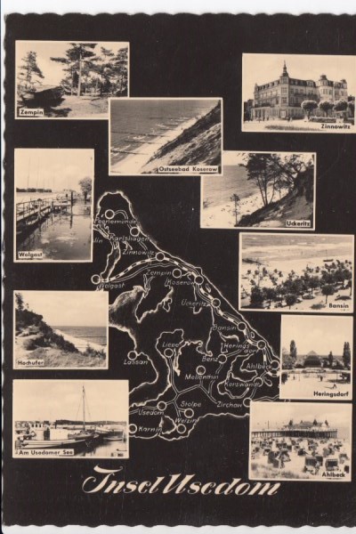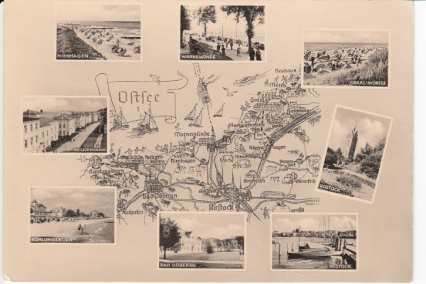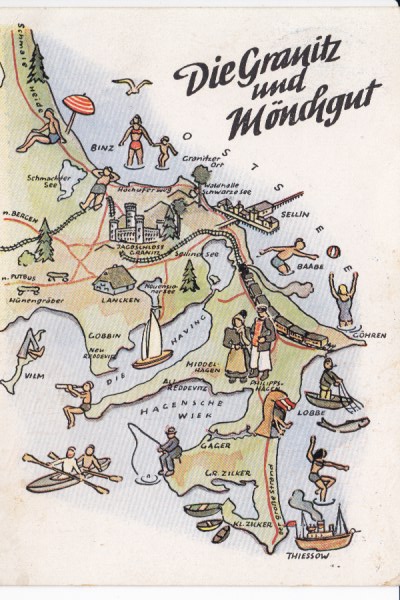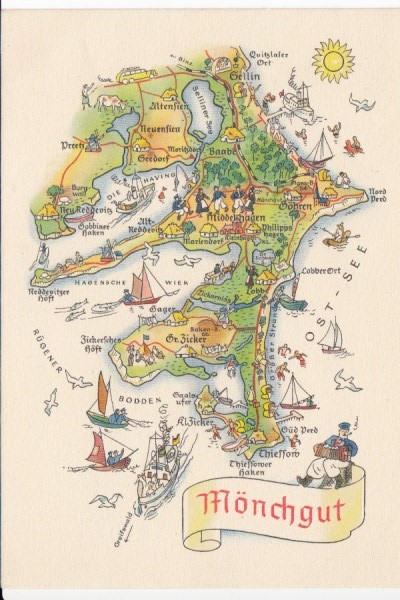 Postkarte als Landkarte Rügen Mönchgut Sellin Groß Zicker Thiessow Lobbe Middelhagen Göhren