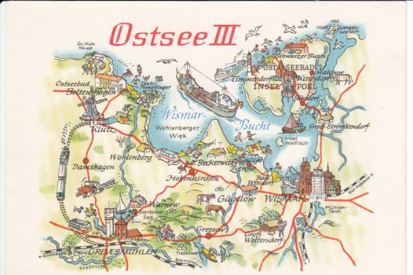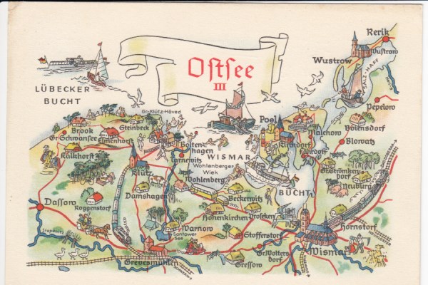 Postkarte als Landkarte Stralsund Greifswald Lubmin Reinberg Wieck Eldena Grimmen Ludwigsburg