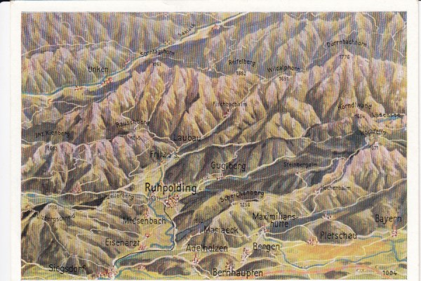 Postkarte als Landkarte Ruhpolding Bernhaupten Bergen Pletschau Eisenärtz