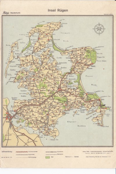 Postkarte als Landkarte Rügen Stralsund Sassnitz Göhren Sellin zingst ca 1940