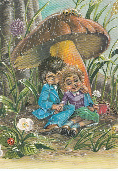 Igel Märchen Ansichtskarten Pilze