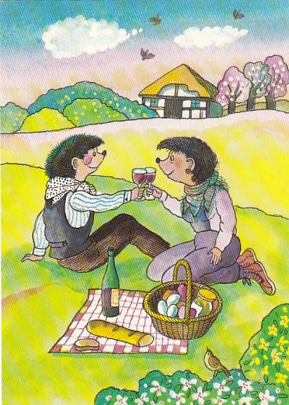 Igel Märchen Ansichtskarten DDR 1960 Wein Alkohol