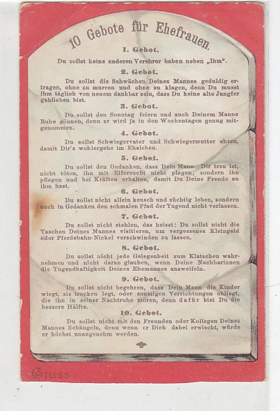 alte Ansichtskarten Thema Ulk Scherz Humor Witz 10 Gebote für Ehrefrauen
