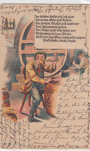 alte Ansichtskarten Thema Ulk Scherz Humor Witz Alkohol Wein Sprüche Spruch 1901