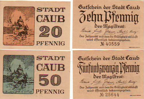 744 [5425wno] |  | Kaub Caub 4 Scheine Notgeld | 6.00EUR | In den Warenkorb |