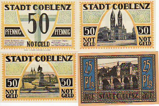 765 [5400wno7] |  | Koblenz 4 Scheine Notgeld 1921 | 4.00EUR | In den Warenkorb |