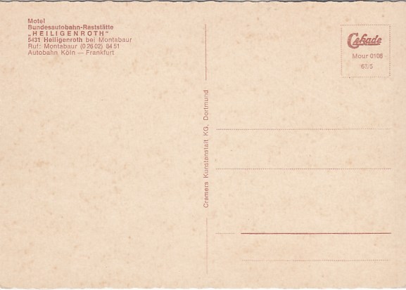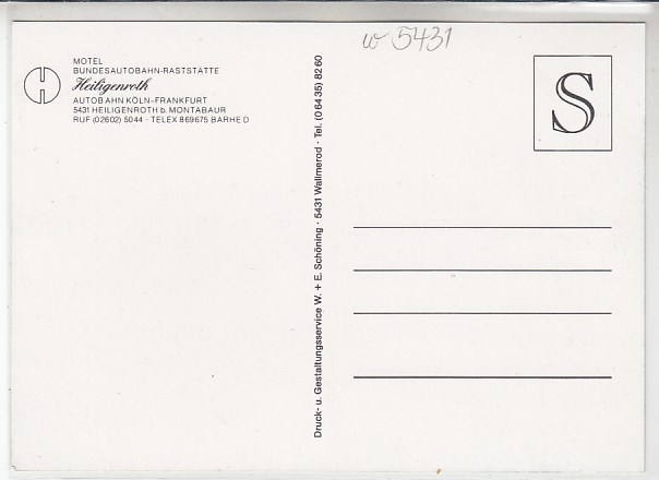 712 [5431w3] |  | Heiligenroth bei Montabaur im Westerland Autobahn-Raststätte 1963 | 4.00EUR | In den Warenkorb |