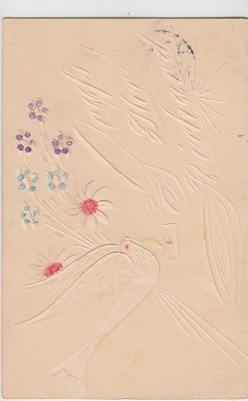 Prägekarte AK mit Relief Blumen Vogel