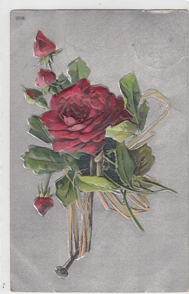 Prägekarte AK mit Relief Blumen Rosen 1911