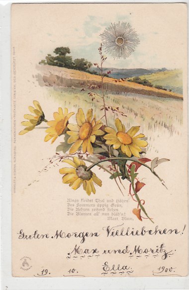 Prägekarte Sonne Blumen ca 1900