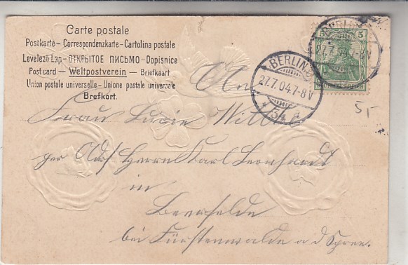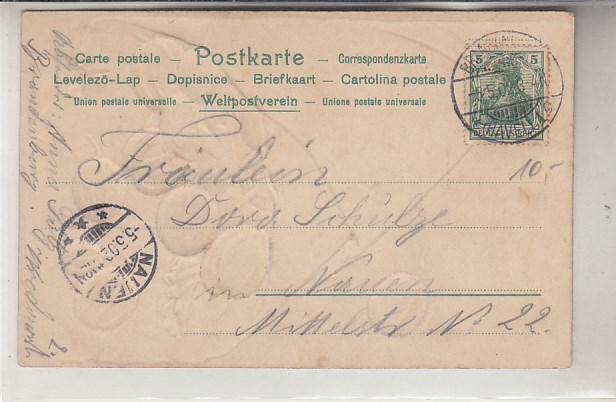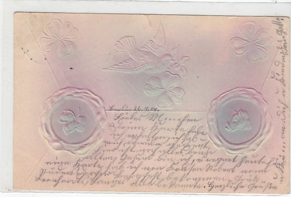 Prägekarte Vogel Schwein Blumen 1904