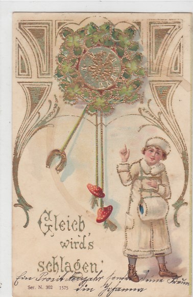 Prägekarte Uhr Jugendstil Kinder Pilze 1903